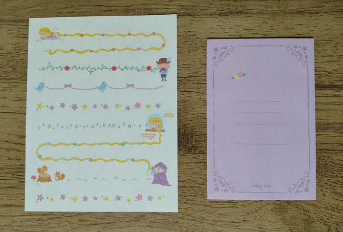 こちらは『ラプンツェル』デザインのレターセットです。魔女や王子様、ラプンツェルがかわいいデザインとなっています。