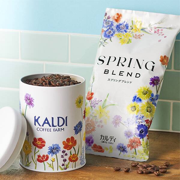 カルディでは、春らしい花柄がかわいいキャニスター缶と、同じデザインのコーヒーがセットで登場。販売は、2023年3月17日(金)となっています。