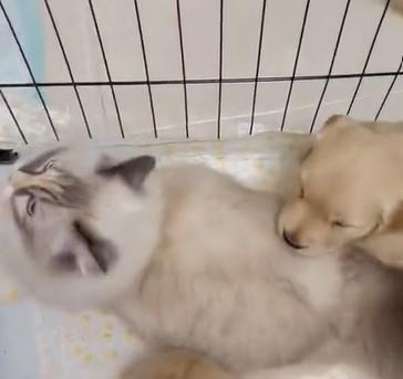 猫に寄っていく生後45日目のゴールデンレトリバー子犬 pic.twitter.com/pmNyriL7UL