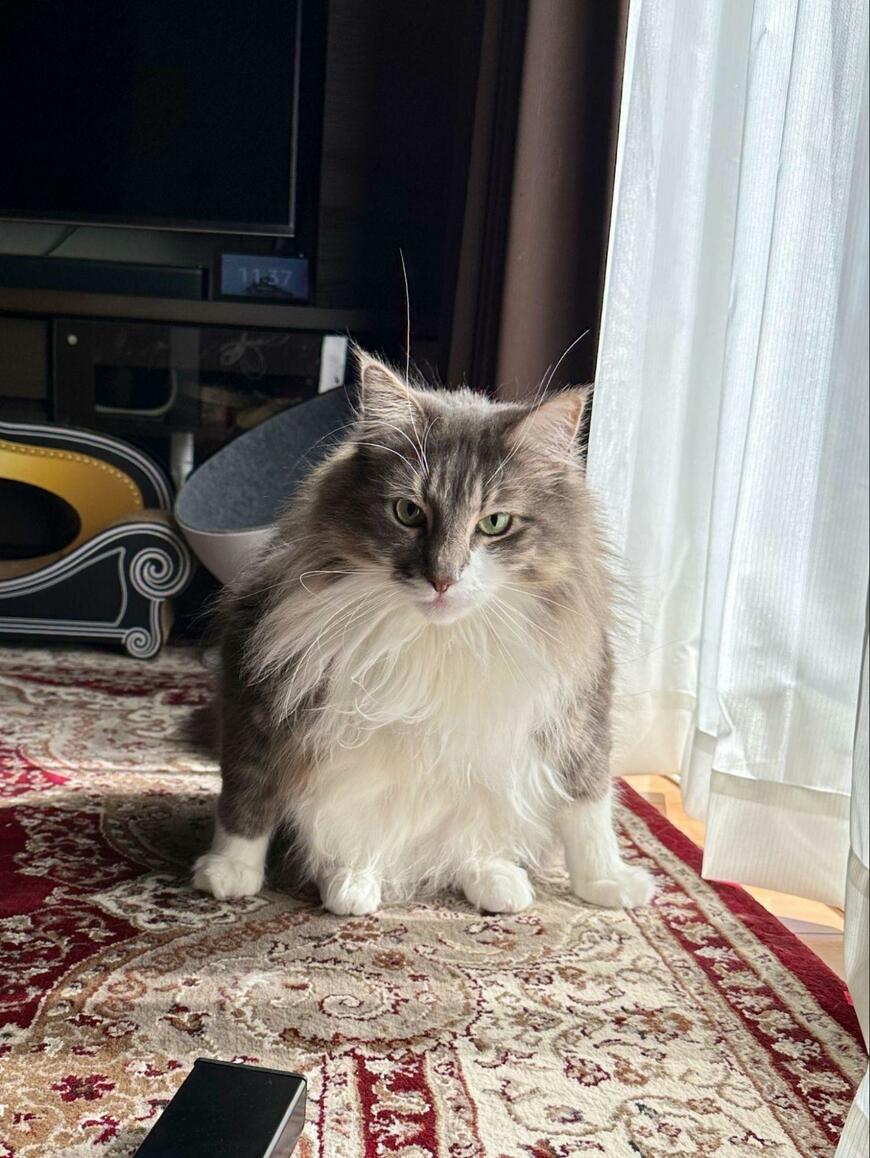 2頭身に見える座り方が笑っちゃうかわいさ!猫の「レイ」くんが話題