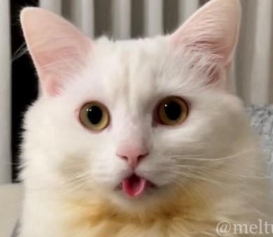 まん丸で輝かしい瞳を大きく開いているマオくん。お顔をアップにしてみると……口元からは、可愛い「桃色の舌」が大胆にはみ出てしまっています。