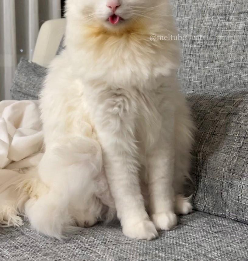 リプライ欄には「しまい忘れ、可愛すぎます!爆笑」「めちゃくちゃ良い写真ですね!笑」「何か忘れているよ!」「ベロ!猫ちゃん、ベロ!」など、さまざまな感想が寄せられています。