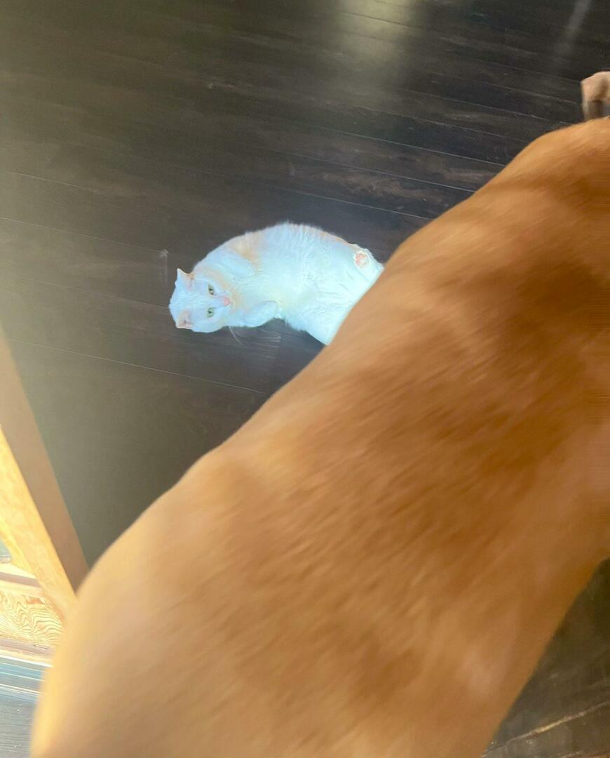話題になったのは、飼い主さんとともに仲良くのんびり山暮らしをしているという、白猫さんと土佐犬さん。白猫さんは普段から、散歩から帰宅したワンちゃんを物陰から脅かしたりしてじゃれることが多いのだといいます。