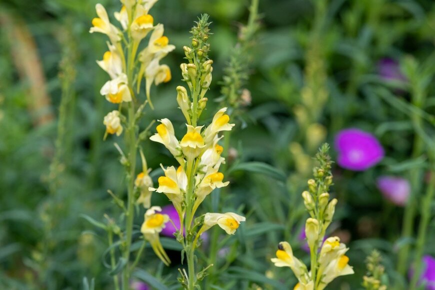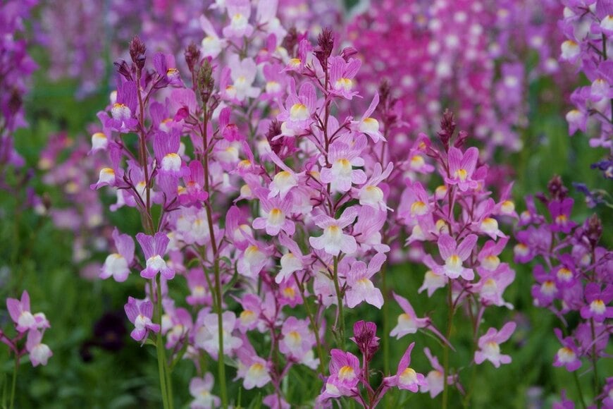 軽やかで可愛らしい小花を咲かせるリナリアはヒメキンジョソウとも呼ばれる一年草。他にも宿根性のリナリアがありますが、一年草のほうが華やかな印象です。
