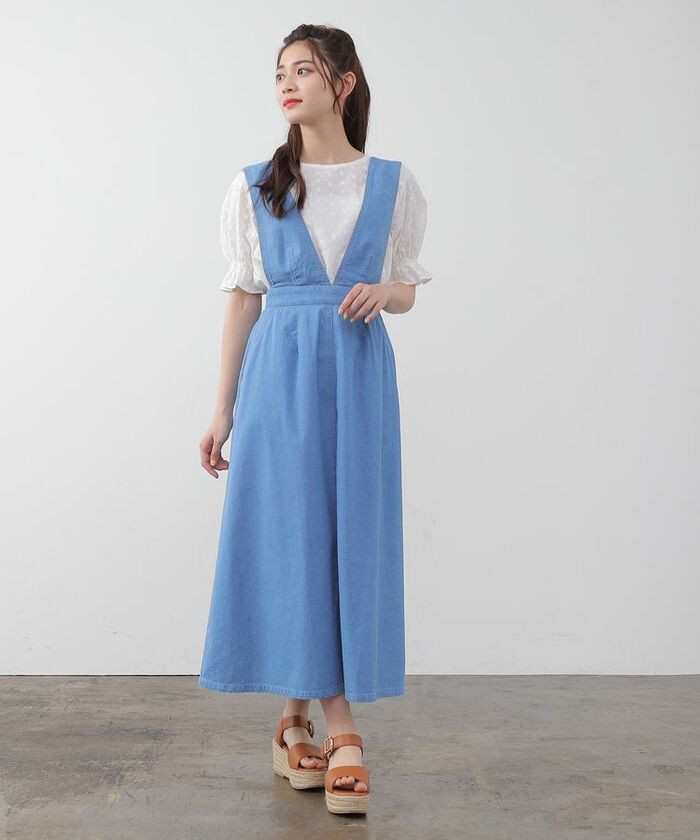 さわやかなブルーが素敵! オールシーズン着まわせそうな「Vネックジャンスカ」