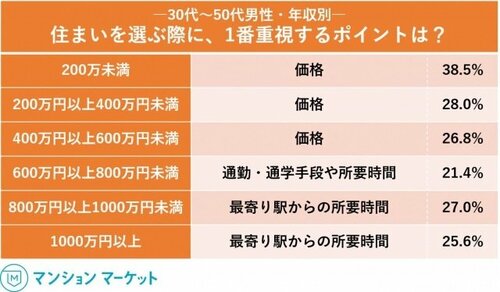 【年収別】住まいを選ぶ際に、最も重視するポイントは?