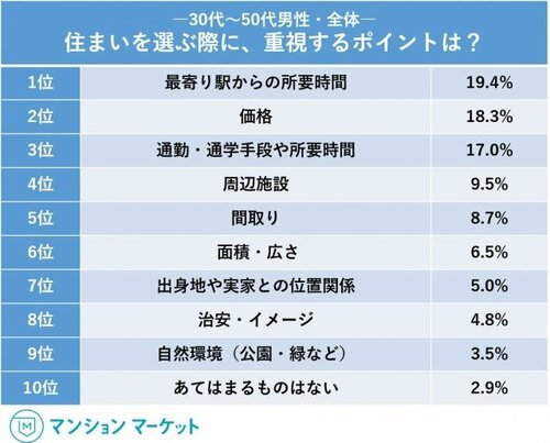 家を選ぶときには「家賃」「最寄駅からの距離」「間取り」など、重視するポイントがあるものです。この調査はマンションサプリが家選びの際に重視したポイントについて30代~50代の男性に行ったアンケート調査をまとめたものです。 -