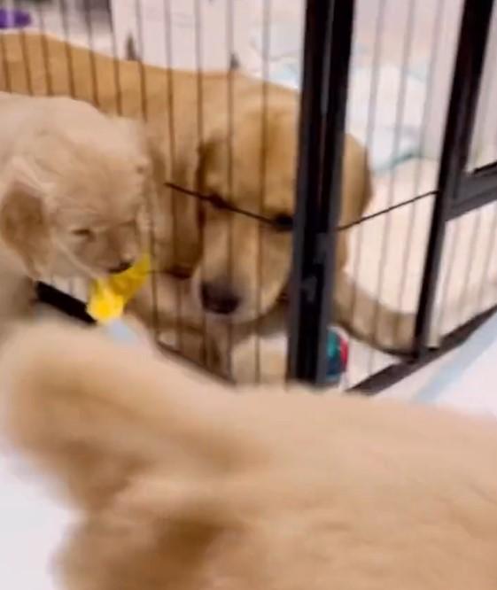 子犬がふたりで母犬の前までおもちゃを持っていく姿にキュンとする💗 pic.twitter.com/brdPZ425DN