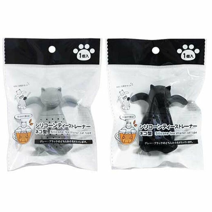 猫型がかわいい「シリコーン製の茶こし」です。黒猫とグレーの猫の2種類があります。どちらもかわいい猫ちゃんです。