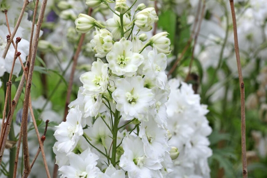 スッと伸びた茎に沿って繊細な花を咲かせデルフィニウムは、爽やかな色合いがお洒落な多年草。
