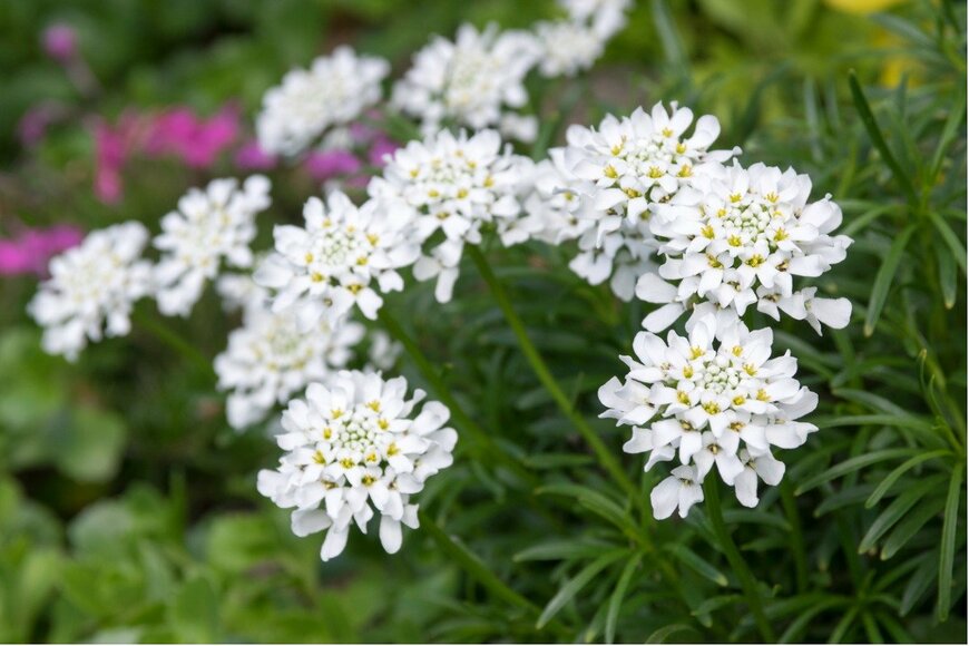 小花が集まって咲くイベリスはホワイトが定番カラーの多年草。矮性種から高性種まであるので、他の植物との組み合わせに応じて選ぶとよいでしょう。※参考価格:200~500円前後(3号ポット苗)