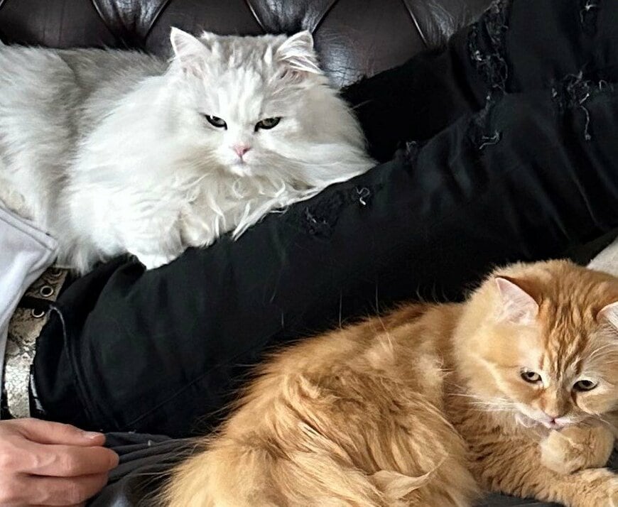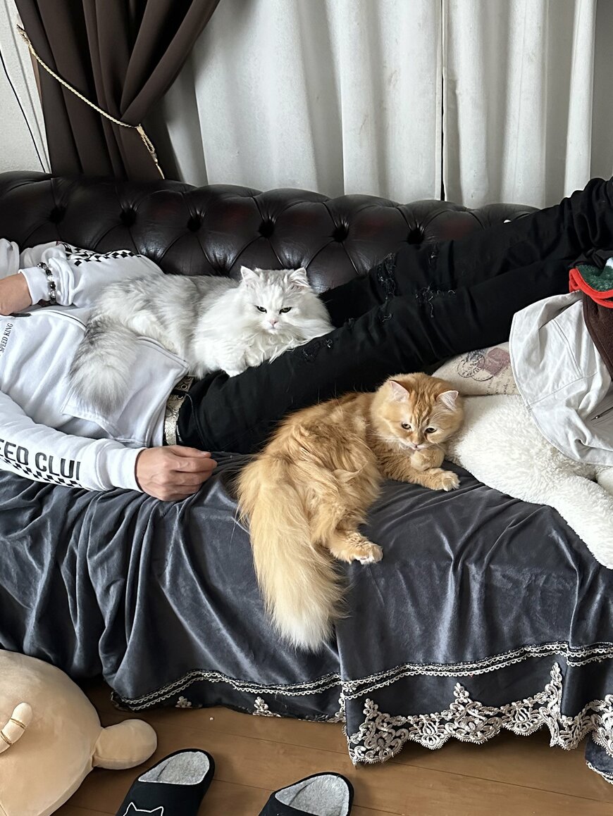 写っているのは2匹の猫ちゃんと飼い主さん。飼い主さんはソファの上でお昼寝していたようですが……?お腹の上や脚の横を独占し、堂々たるくつろぎぶりを見せる猫ちゃんたちが反響を呼んでいます。