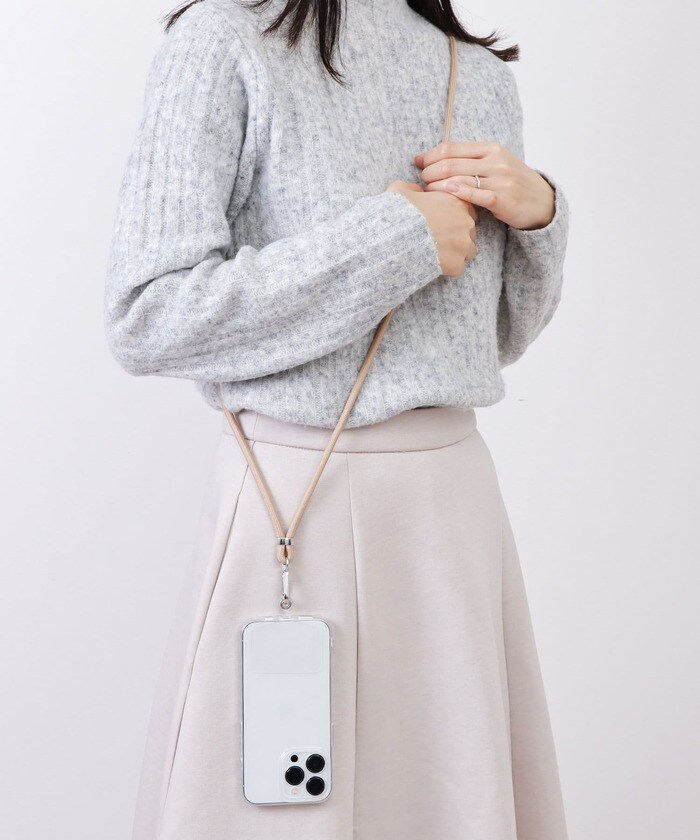 薄いカードをスマートフォンのカバーに挟み、ストラップをつけるだけで簡単に使用が可能です。また、紐の長さはお好みで調節できます。現在、人気のため再入荷待ちのカラーも。