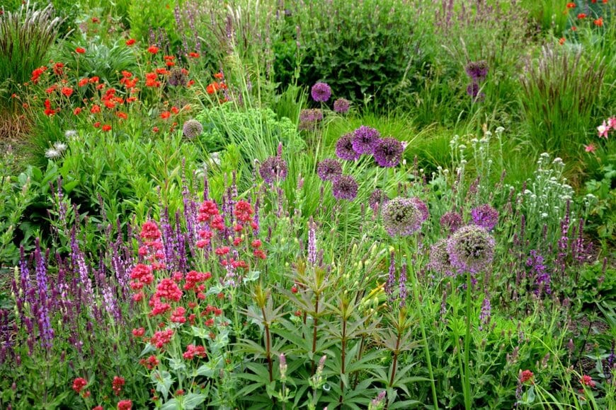 さまざまな草姿や生育の特徴が異なる植物を組み合わせることで、変化のある風景になりナチュラル感も演出できます。