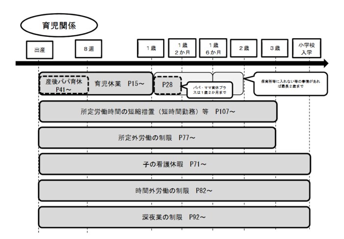 厚生労働省では、「育児・介護休業法」に基づく休業制度や短時間勤務制度などを設けています。