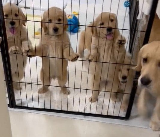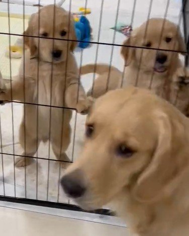 そんなコメントとともに投稿されたのは1本の動画でした。動画におさめられているのは、ゴールデンレトリバーの女の子「ぷぅ」ちゃんと、ぷぅちゃんから産まれた子犬たちの様子です。