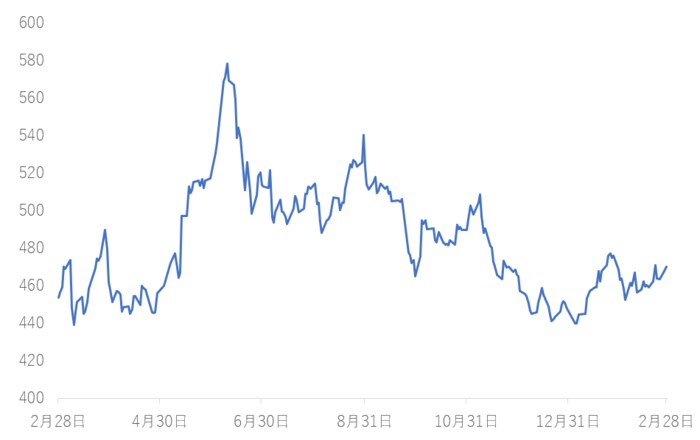ENEOSホールディングス(5020)の株価は2022年6月頃を境に低下傾向となっています。