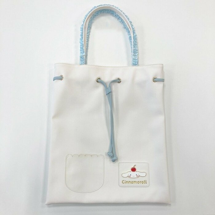 ハンドルのフリルがかわいく、紐を絞れば巾着に、広げればトートとして活躍してくれる二刀流。A4サイズも入るしっかりとしたサイズ感も実用的ですね。また、大きく開く開口部は、中身の出し入れもしやすいので、普段使いもバッチリ。