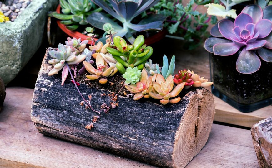 花よりもお手入れの手間がかからない多肉植物は、ズボラさんでも育てやすい植物。色や形が違う多肉植物をいくつかチョイスして植えれば、それだけでオシャレな雰囲気に仕上がります。