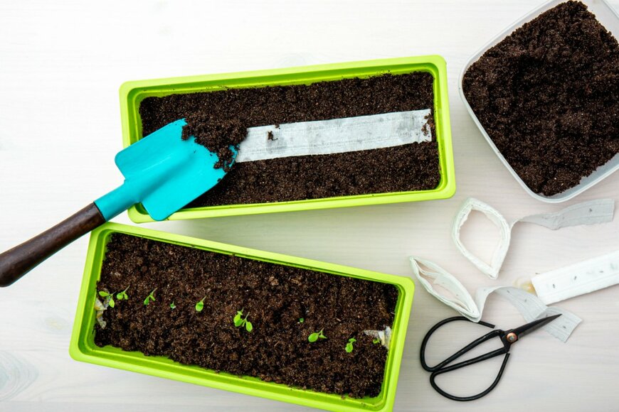 水溶性のテープに種が埋め込まれているシートのこと。等間隔で埋め込まれており、テープを伸ばして土に埋めるだけで種まきができます。