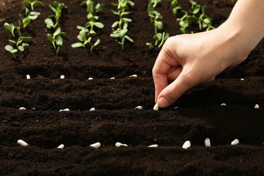 一定の間隔に列を作って種をまく方法。間引きをしながら野菜を育てるときに向いています。