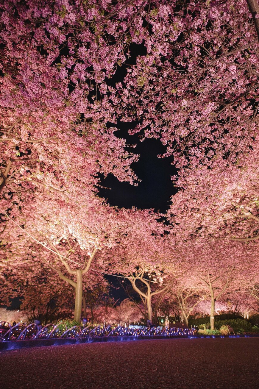 園内には約300本の河津桜が咲き誇り、空を覆うように咲く桜トンネルや、水面に映る幻想的な桜リフレクションなどを楽しめるようです。夜はライトアップされて、幻想的な夜桜も鑑賞できます。