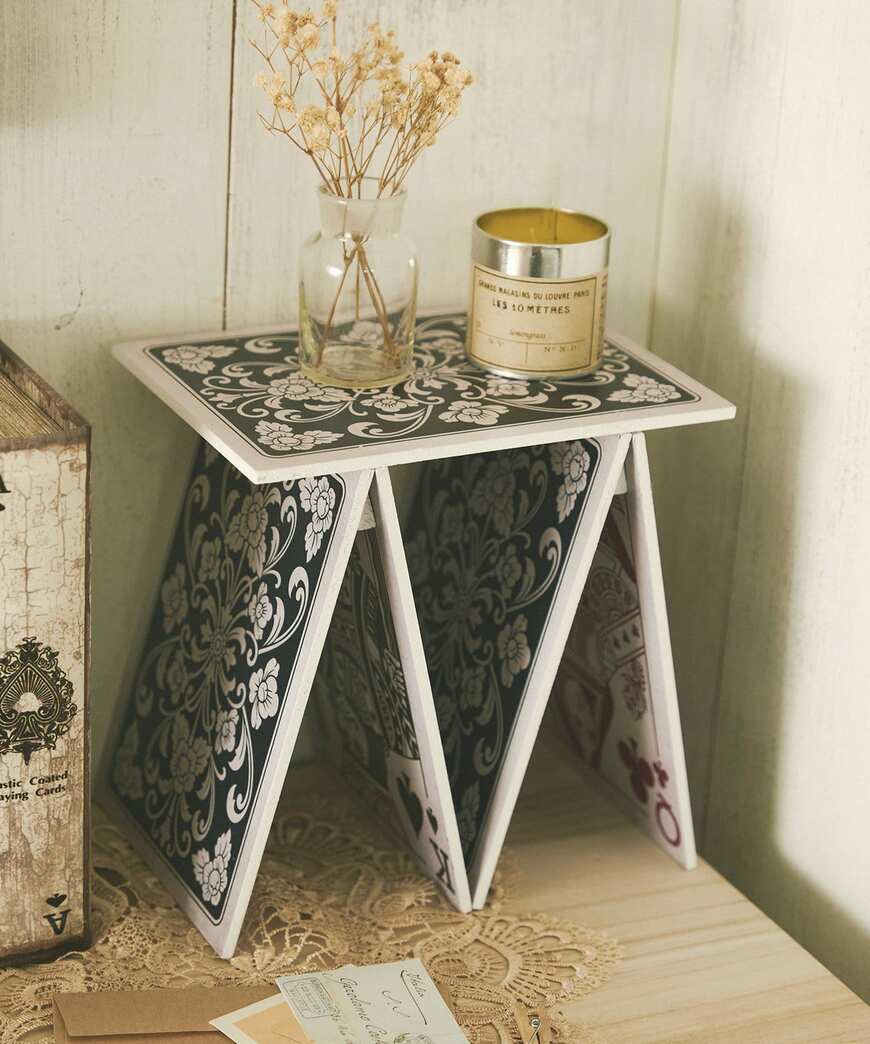 魔法でトランプが浮いて組み合わされているように見えます。存在感を感じさせてくれる個性的なアイテムです。