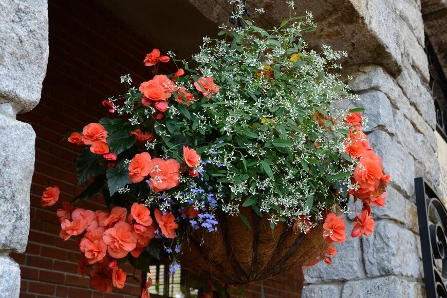 多肉質でツヤのある葉と花が特徴的なベゴニアは、世代を超えて愛される花。「センパフローレンス」という品種が定番ですが、他にも木立性ベゴニアなど、さまざまな品種があります。