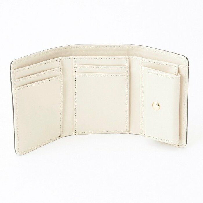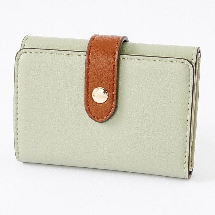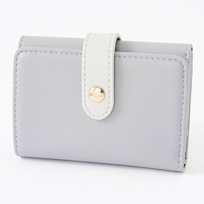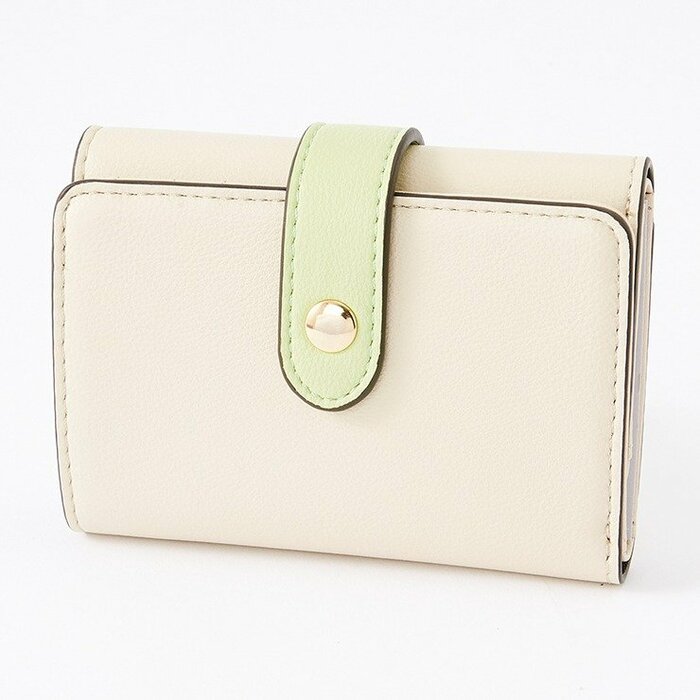 配色がおしゃれな「3つ折りのミニ財布」です。カラーは、ホワイト・グレー・ブラウン・グリーンの4色があります。