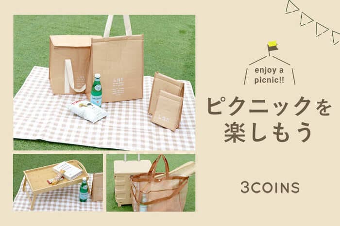スリコでは、おうち時間を楽しくしてくれるプチプラアイテムや、お部屋やキッチンのコーディネートに便利なインテリアグッズなどを幅広く展開しています。現在、3COINS公式オンラインストアでは「ピクニックを楽しもう!」をテーマに、春のお出かけが楽しくなる便利アイテムを販売中です。