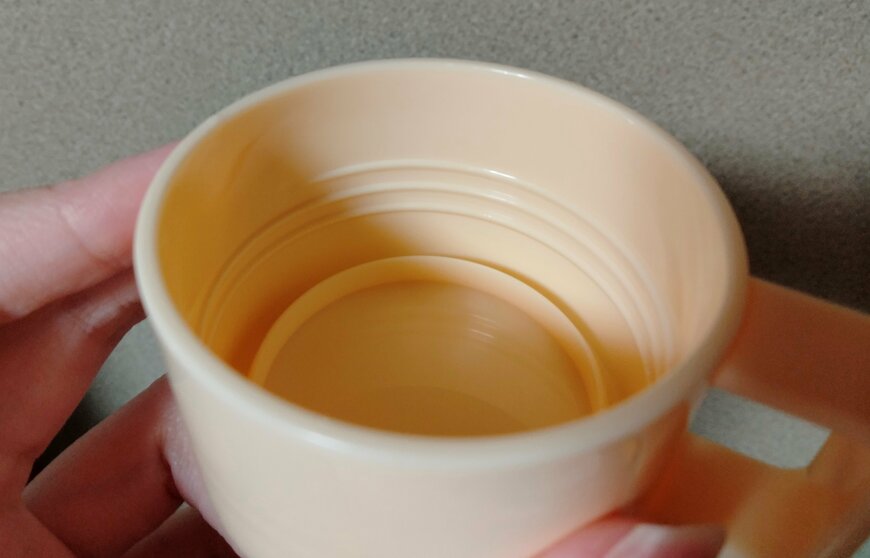 セリアのドリンクボトルのコップは使いやすいです。唇が当たる上部には、ギザギザのネジ山がついていない仕様となっています。