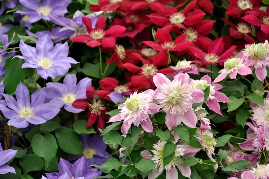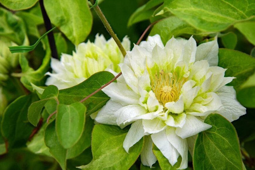 「つる植物の女王」とも呼ばれるクレマチス。品種によっては一年中楽しむことができる多年草で、春から秋に開花する品種もあります。人気品種の「白万重」もそのひとつ。ホワイトの八重咲きが美しい、フロリダ系の品種です。※参考価格:500~1000円前後(3~4号ポット苗)
