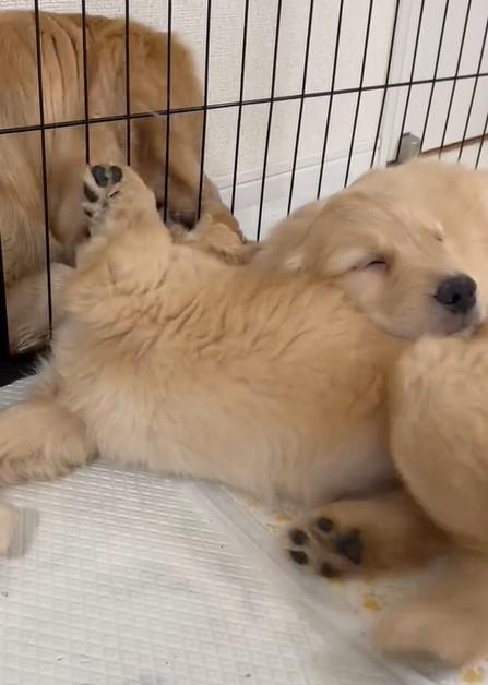 しばらくするとつゆちゃんは、ついに目を閉じて眠り始めました。もう一匹の子犬ちゃんがいくら身体を動かそうとも、相変わらず気にする様子はありません。とっても気持ちよさそうな寝顔を浮かべています……!