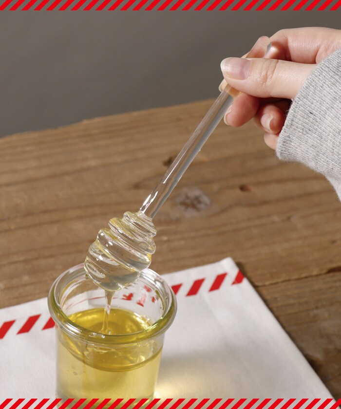 くるくる回してハチミツをすくうことができるアイテムです。ガラスのクリア感がとても美しいです。