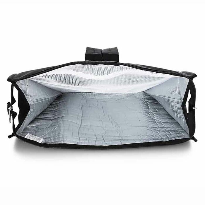 斜めに持ち歩きたくないケーキやピザ、お家で作ったグラタンなどを持ち運びできる保温・保冷バッグです。内ポケットはメッシュなので、保冷材やカトラリー入れとしても役立ちます。便利なファスナー付き。