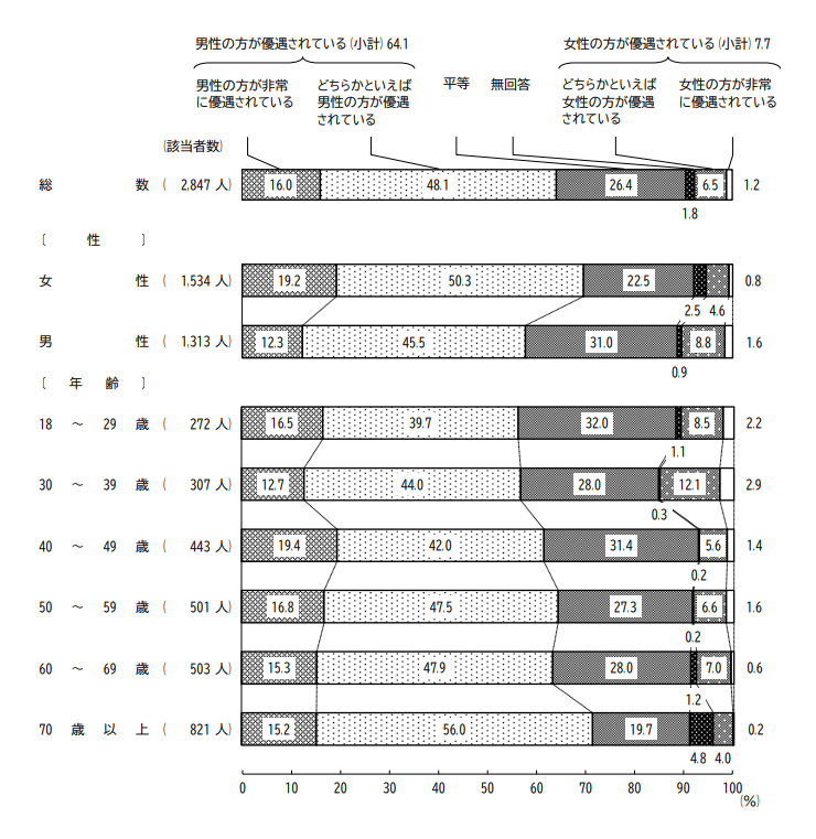 - 男性の方が優遇されている(小計) 64.1%