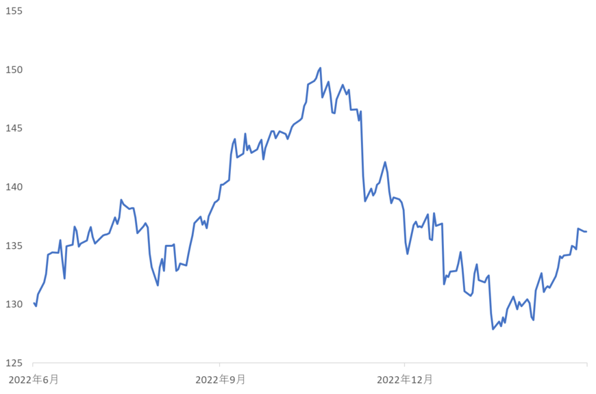 2022年は総じて円安でしたが、2022年の秋以降から円高が進行していたため、為替が商船三井の減益圧力をもたらすリスク要因となっていました。しかし、2023年1月半ばごろから円高に歯止めがかかり、再び円安トレンドを示している点が、株価のサポート材料になったと考えられます。