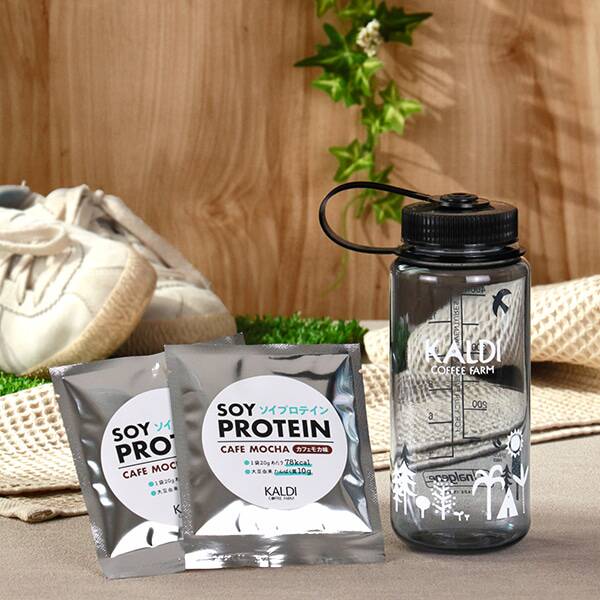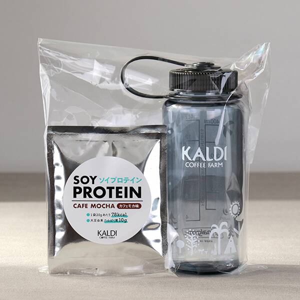 また、セットに入っている粉末プロテインは、カフェモカ味です。水と一緒にボトルに入れてよく振るだけで手軽にプロテインドリンクを摂取することができます。ソイプロテインは、筋力向上をサポートしたり不足しがちなたんぱく質を効率よく補ってくれるプロテインです。スポーツの後や朝食、ちょっとした間食など、生活スタイルに合わせてお好きなタイミングで味わえます。