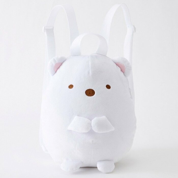 すみっコぐらしのキュートなぬいぐるみ型リュックです。ファスナーポケットもついているので便利です。推しキャラとのお出かけが楽しめそうですね。