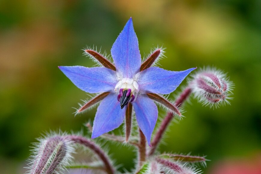 ハーブに分類されるボリジは星型の花を咲かせる一年草。春から初夏にかけて開花し、初めはピンク色、次第にブルーに変わっていきます。
