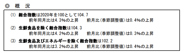 総務省統計局が発表した2023年1月分の消費者物価指数は、生鮮食品を除く総合指数で対前年4.2%の上昇となっています。