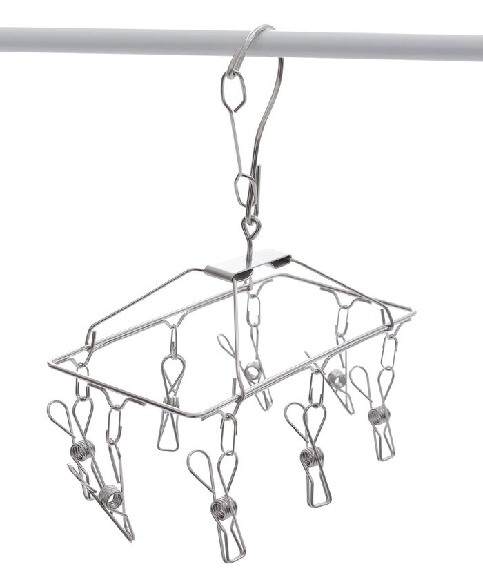 サビにも強い、丈夫なステンレス素材を使用したロングセラーピンチ。コンパクトなサイズ感なので、靴下やマスク、ハンカチなど小物を干す場合に便利です。