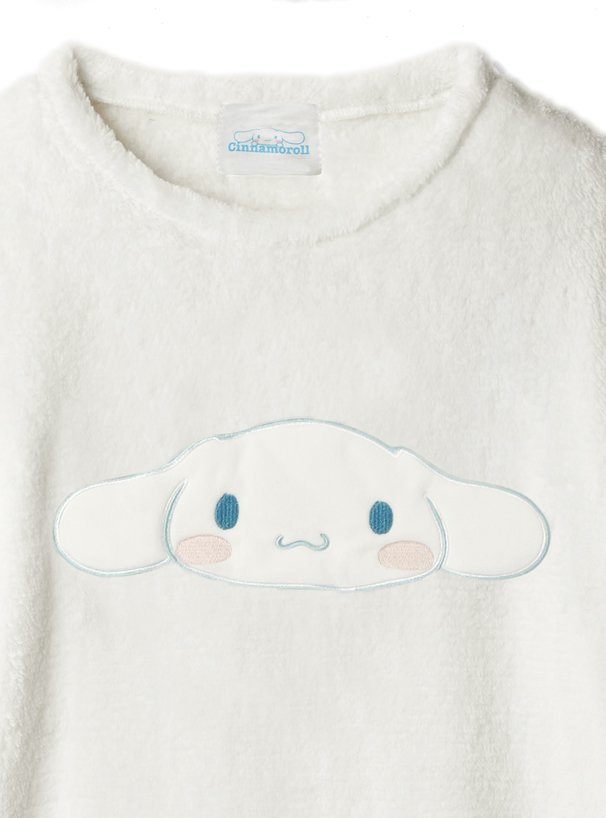 ワンピースタイプのルームウェア。真っ白でもこもこのボア素材がシナモンらしい一着です。セットのヘアバンドにはシナモンの耳がついており、なりきりアイテムとして申し分ありません。さらに裾や肩についたフリルが乙女気分を高めてくれます。ゆったり着られるサイズ感で、のんびりとしたおうち時間を過ごすときにもってこいのアイテムです。