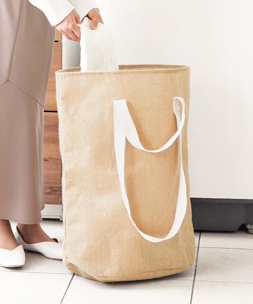 【3COINS】持ち手が2つあるのが嬉しい「ジュートバッグ型ランドリー収納」