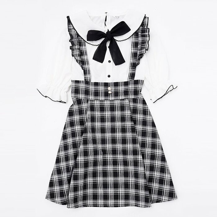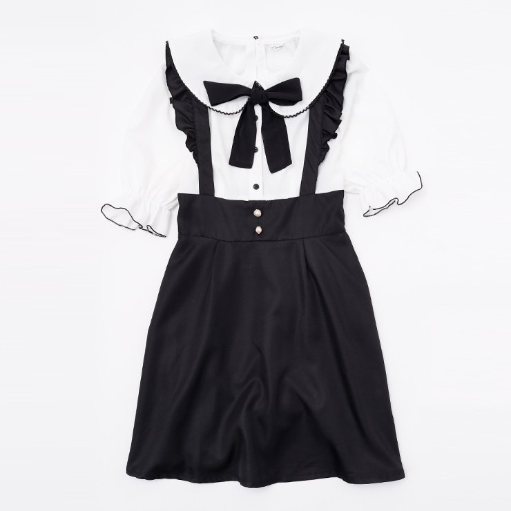 こちらはホワイト×ブラックの組み合わせのワンピースです。地雷系らしい雰囲気が魅力です。ブラックがゴシックな雰囲気を出しているのも素敵です。
