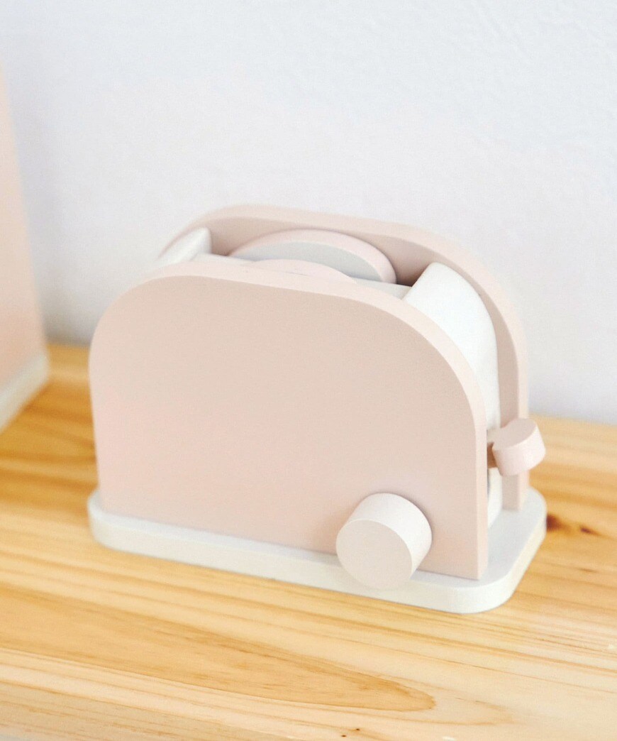 トースターのレバーを下に押せば食パンが出てくる仕組みになっています。食パンもウッド素材でできていてかわいいです。食パンだけでもおままごと遊びを楽しくしてくれそうです。