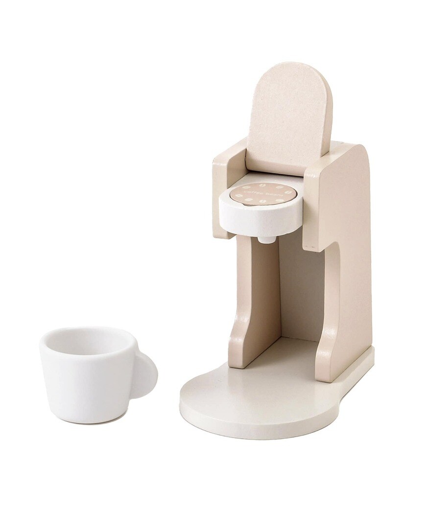 本物にそっくりなウッド製のコーヒーメーカーのおもちゃです。コーヒーメーカーだけでなく、ホワイトカラーがおしゃれなカップも付属しています。