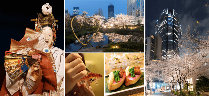 毛利庭園と六本木さくら坂では合計約90本の桜をライトアップ、通常非公開の屋上庭園でも桜を楽しめるほか、六本木ヒルズ展望台では、東京の満開の桜を上空から見渡す「天空のお花見」を体験することができます。
