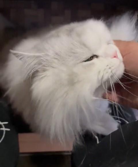 ノーマンくんは顔の周りをナデナデされてご満悦の様子。徐々に目を細めていく表情の変化がとっても気持ちよさそうで、眺めているこちらまでウットリしてしまいます。