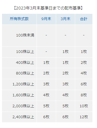 ※2023年3月末基準日までの配布基準